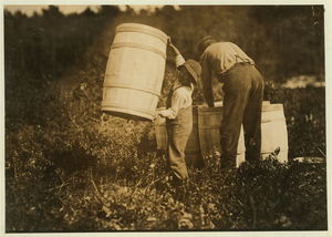 Boy who carries barrels. Robert Saunders, 10 years old. Lives Waquoit - is the sone i.e., son of the boss. Mother picks too. Location: South Carver vicinity, Massachusetts.