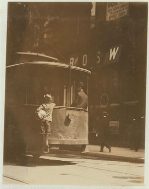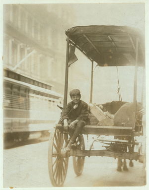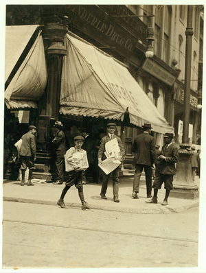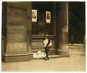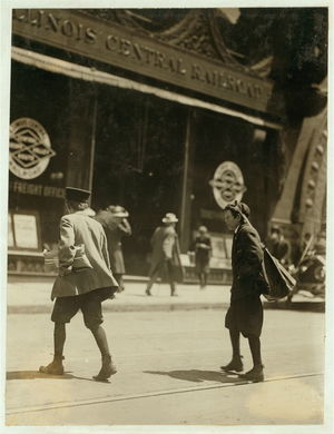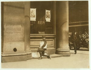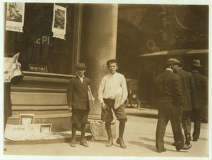 11:00 A.M. Thursday May 11th, 1910. Truant selling Saturday Evening Post. 7th & Olive Sts.,. Location: St. Louis, Missouri.