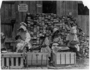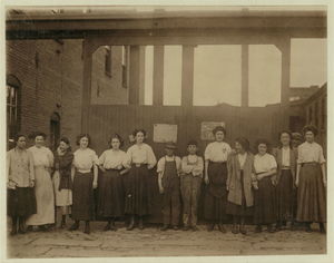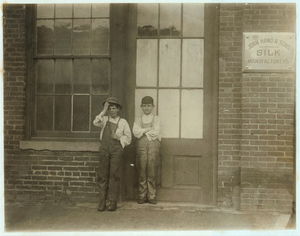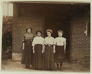 Groups of workers in Hand's Silk Mill. Location: Wilmington, Delaware.