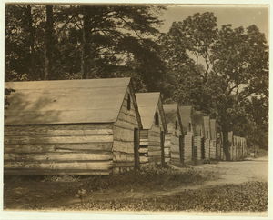 The negro berry pickers shacks on the farm of Col. J. J. Ross, Del. The interior of these shacks consists of a flooring of straw, a few bags, and absence of light and air. Location: Ross, Delaware.