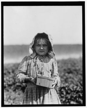 Alberta McNadd on Chester Truitt's farm at Cannon, Del. Alberta is 5 years of age and has been picking berries since she was 3. Her mother volunteered the information that she picks steadily from sun-up to sun-down. Location: Cannon, Delaware.