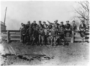 Noon Hour. All these boys (and more) worked in the Quidwick Co. Mill, Anthony, R. I. (a medium sized mill). They went in when the signal was given. Location: Anthony, Rhode Island.
