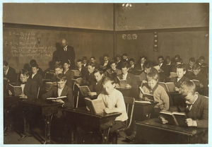 Working Boys of all Nationalities Making the Best of the Spare Evening Hours. Boston 1915 Exhibit. Location: Boston, Massachusetts.