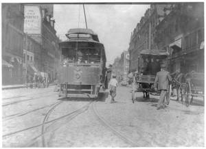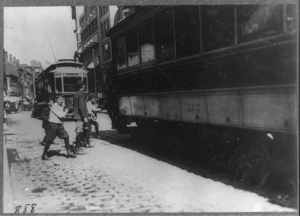 School boys, "flipping cars," noon. Location: Boston, Massachusetts.