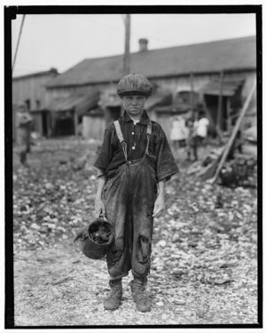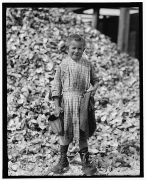 Eleven-year old oyster shucker. Shucks seven pots a day. Varn and Platt Canning Co. Location: Bluffton, South Carolina.
