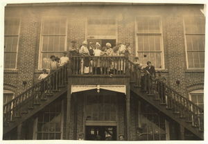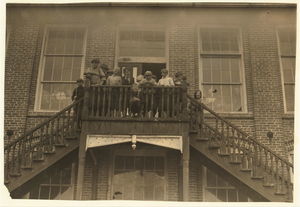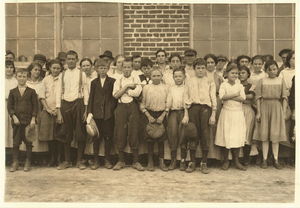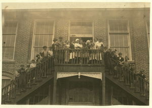 Tolar, Hart and Holt Mills. All the children went in when the whistle blew, and I saw most of them at work the next day when I went through the spinning room at 10 A.M. Some of them are surely under 12 years old. Location: Fayetteville, North Carolina.