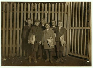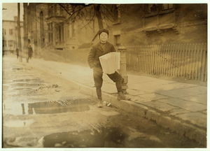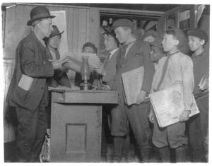 Newsies starting out with Sunday papers, 6 A.M. Location: Boston, Massachusetts.