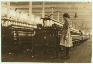 One of the youngest spinners in the Washington Cotton Mills, Fries, Va. Hettie Roberts. Runs two sides. Been working several weeks. Location: Fries, Virginia.