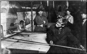 Three years in the Glass House and no chance for promotion yet. Boy in foreground been "carry-in" since he was 14 years old. Wormser's Glass House. Location: Pittsburgh, Pennsylvania.