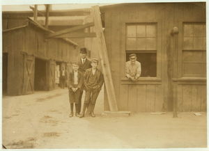 These boys work off and on in Cumberland Glass Works, Bridgeton, N.J. Smallest boy is Geo. Cartwright, 401 N. Laurel St. He says been working off and on since 11 years old. Location: Bridgeton, New Jersey.
