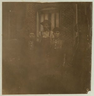 Trenton Mill, Gastonia, N.C. Smallest boy,--Tom Jenkins. Said 13 years old. Been in mill 3 years. Brother Walter Jenkins. Said 15 years old. Been in mill four years. Location: Gastonia, North Carolina.