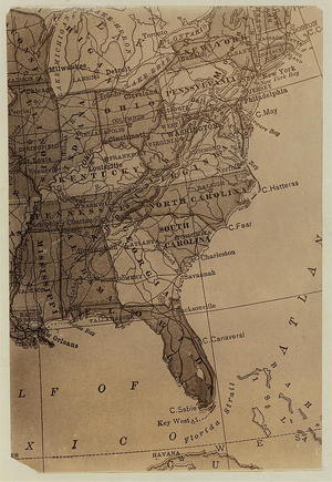 A map showing the location of the Oyster and Shrimp canneries of the Gulf and South Atlantic Coast.