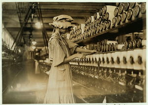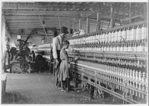 It seems a pity that some of the spinning frames are so large that the children cannot operate them. Catawba Cotton Mills. Location: Newton, North Carolina.