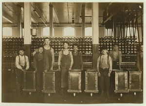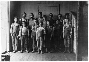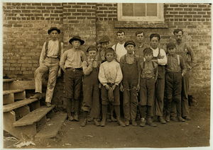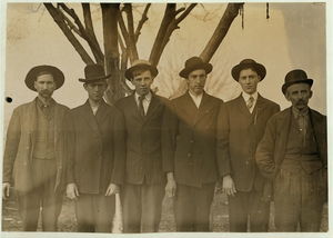 Some of the men and boys in Newton (N.C.) Cotton Mills. Plenty of youngsters here. Out of 150 employees, there were about 20 who looked to be 12 years old and under. Location: Newton, North Carolina.