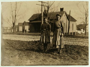 Lunch time, Kesler Mfg. Co. The little one carries the lunch. Usually the hands all go home to dinner. Location: Salisbury, North Carolina.
