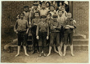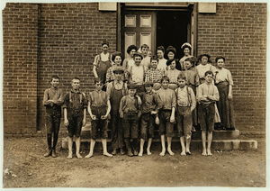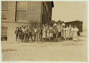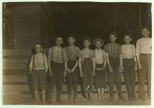 Adolescents and other in Payne Cotton Mill, Macon, Ga. Girl on end with dropping eyelids has been helping there one yr. Jan. 20, 1909. L.W. Location: Macon, Georgia.