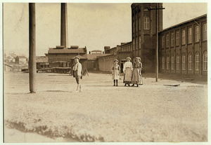 A few of the youngsters in the Manchester Cotton Mills, Macon, Ga. I was not allowed to go inside. See photos 517 to 520. Location: Macon, Georgia.