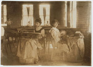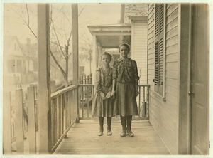 Taller girl Eunice Lambert. Other--Nellie McKinney. Been in King Mill for 2 years. Location: Augusta, Georgia.