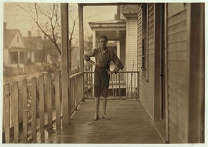 Charlie Lambert 15 now (he says) been in mill work 8 years. Went into mill in Columbia, S.C. at 7 years old, in Granby Mill. (See photo 557). Location: Augusta, Georgia.