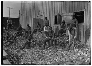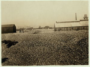 Acres and acres of empty oyster shells. Piles 15 deep in places. Shells are used all over the town to make streets, railroad beds, etc. Many of these piles are said to be the work of young shuckers. Location: Florida.