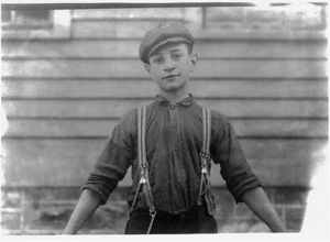 Small boy working in Cocheco Mfg. Co., Dover, N.H. Others much smaller and younger there. Location: Dover, New Hampshire.