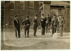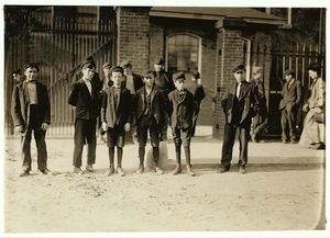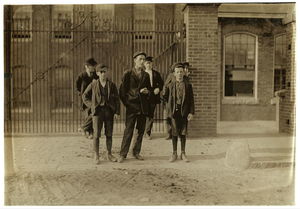 Some of the small boys working in the Amoskeag Mfg. Co., Manchester, N.H. Photo taken at Noon, May 25. Location: Manchester, New Hampshire.
