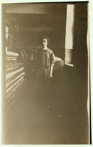 Great Falls Mfg. Co., Somersworth, N. H. One of the young girls. There are a number of boys and girls as small and smaller, scattered through these mills. Location: Somersworth, New Hampshire.