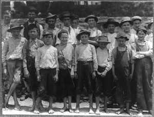 Some of the youngsters working in Belton Mfg. Co., Belton, S.C. Two of the youngest and J. Henderson. Kelly Street. Percy Morrison, Eugene Simper. Location: Belton, South Carolina.