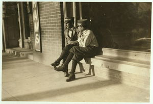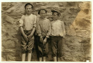 Some of the youngsters working in Belton Mfg. Co., Belton S.C. Two of the youngest and J. Henderson, Kelly Street. Percy Morrison, Eugene Simper. Location: Belton, South Carolina.