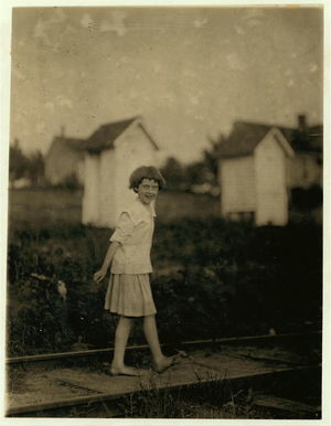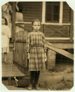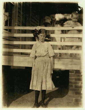 Minnie Lee Partain, a young helper in Columbus, (Ga.) Manufacturing Co. 2950 2nd Avenue. Location: Columbus, Georgia.