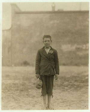One of the youngest workers going in at 5:30 A.M. Belton Mfg. Co., Belton, S.C. Location: Belton, South Carolina.