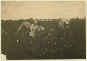 Two families working together on Kimball farm near Waxahachie. The four year old picks nine pounds a day regularly and the eleven year old picks three hundred pounds a day. Location: Waxahachie vicinity, Texas.