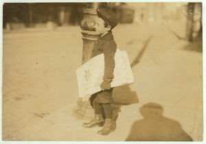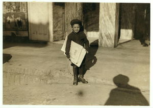Beaumont is overrun with little newsies. This boy, Vincent Serio, eight years old, is up at 5:00 A.M. daily. "Have sold papers since I was four years old." Location: Beaumont, Texas.