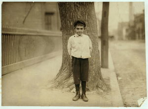 Jimmie Rudgeway, 8 years old, newsboy, Providence, R. I. (For Child Welfare Exhibit 1912-13.) Location: Providence, Rhode Island.