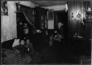 (For Child Welfare Exhibit 1912-13.) Crowded Italian home, 46 Crary St., Providence, R.I. Nov 26, 1912. Property owned by wealthy family. Location: Providence, Rhode Island.