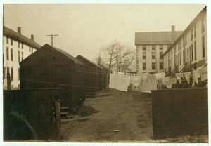 (For Child Welfare Exhibit 1912-13.) Privies and back-yards, Lonsdale, R.I. Location: Lonsdale, Rhode Island.