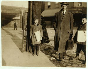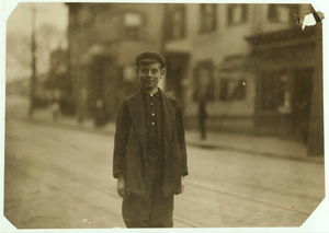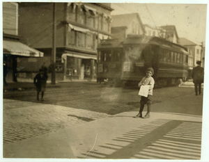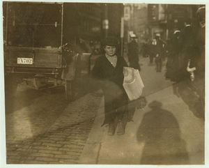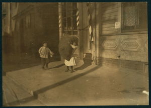 (For Child Welfare Exhibit 1912-13.) Peddling Bills, Atwells Ave., Providence, R.I. Location: Providence, Rhode Island.