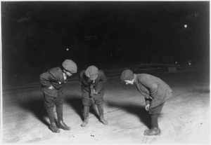(For Child Welfare Exhibit 1912-13.) A midnight crap game in the street near Post Office, Providence, R.I. Nov 23, 1912. One 12 years old, one 14. One had been shooting here a couple of hours. Location: Providence, Rhode Island.