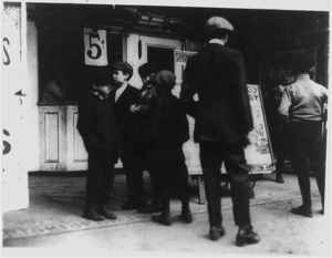 Going to the "Movies." This theatre makes no attempt to obey the state law. Boys of any age can go in, afternoon or evening. 2:30 P.M. Location: Jersey City, New Jersey.