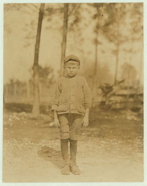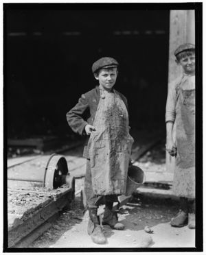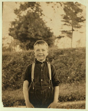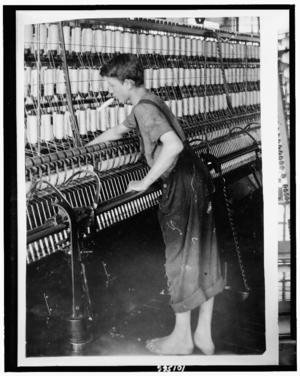 Doffer - Mule room - 16 years. Berkshire Cotton Mills. Location: Adams, Massachusetts / Lewis W. Hine.