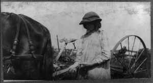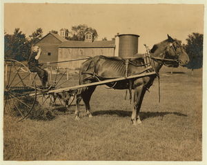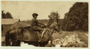 Rural Accident. Eleven-year old Wason, driving horse to the field. See photos of his brother Clinton Stewart. See Hine Report, August 1915.
