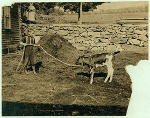 Eight-year old Jack on a Western Massachusetts farm. He is a type of child who is being overworked in many rural districts. See Hine Report, Rural Child Labor, August 1915. Location: Western Massachusetts, Massachusetts