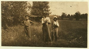 Rural Accident. Mr. Stewart is running a farm of 135 acres with the help of his wife and these two boys of eleven and twelve years. See Hine Report, August 1915.