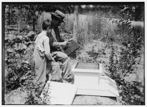 Work that Educates. Twelve-year old boy tending bees under the direction of his father, John Spargo. Bennington, Vermont, Aug. 1914. Location: Bennington, Vermont.