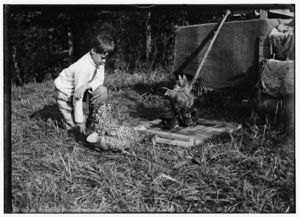 Work that Educates.Twelve-year old boy tending chickens with his father, John Spargo. Bennington, Vermont, Aug. 1914. Location: Bennington, Vermont.