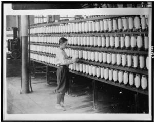 14 year old Spooler tender. Berkshire Cotton Mills. Location: Adams, Massachusetts / Lewis W. Hine.