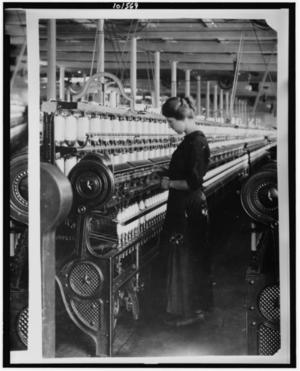 14-year old spinner in Berkshire Cotton Mills. Location: Adams, Massachusetts / Lewis W. Hine.