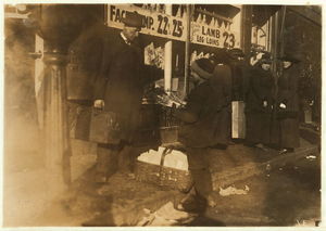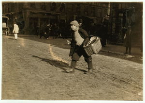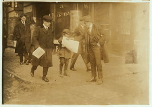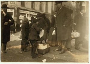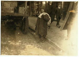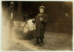 Newsie under age. Selling near Market at 5 p.m. Location: Boston, Massachusetts / Lewis W. Hine.