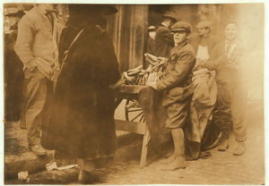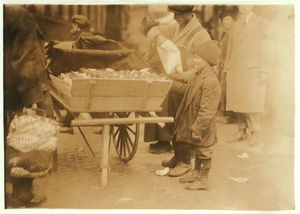 Selling oranges. Location: Boston, Massachusetts / Lewis W. Hine.