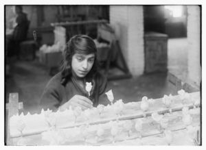 Margaret Ciampa, 14 years old, finishing flowers at Boston Floral Supply Co., 347-357 Cambridge Street. Said to be the only flower factory in Massachusetts. Location: Boston, Massachusetts / Lewis W. Hine.